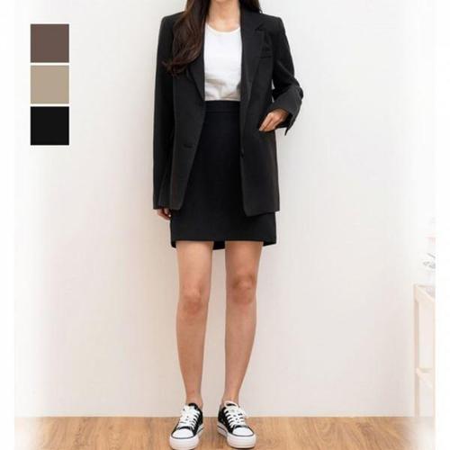 [에이치플러스몰]출퇴근코디 오버핏 재킷 무릎위 스커트 여자 세트