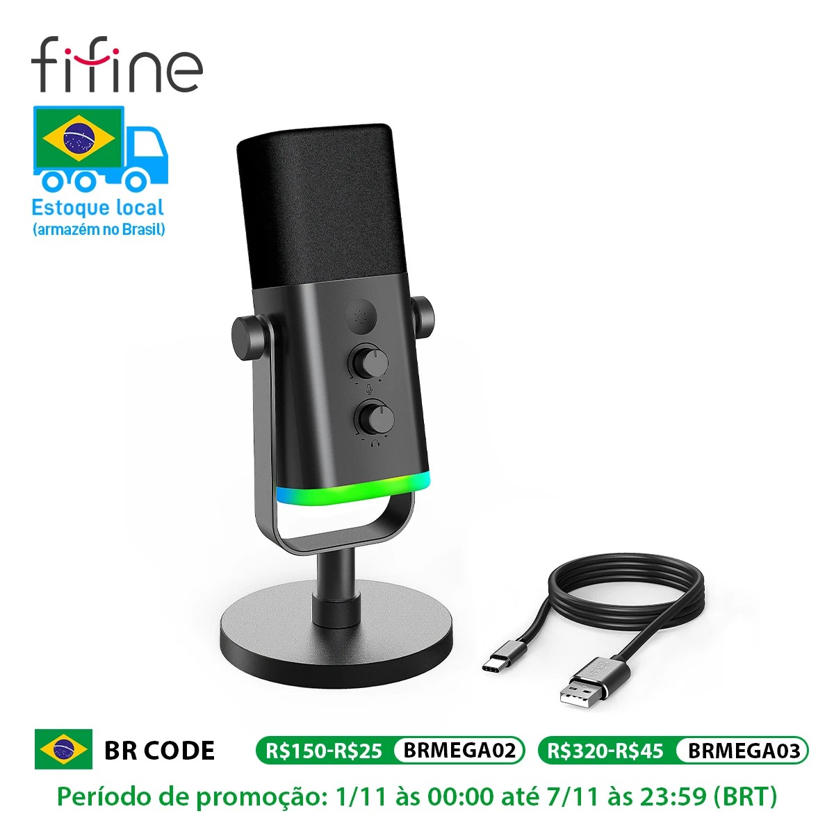 RGB 제어/헤드폰 잭/음소거, PC 게임 녹음용 마이크가 포함된 FIFINE USB/XLR 다이나믹 마이크 스트리밍 AmpliGame-AM8