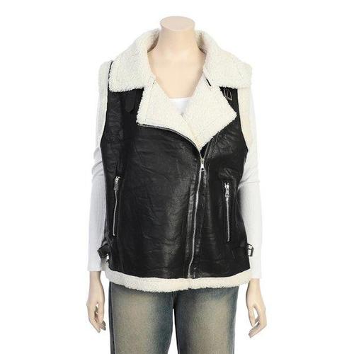 [다잇템][다잇템] 여자 덤블 모양 콘트라스트 카라없는 트랜디 무스탕 베스트_18689697_588872