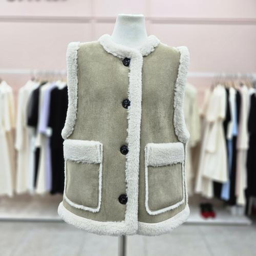 [샤틴]라인배색 페이크 무스탕 베스트S254C001A04