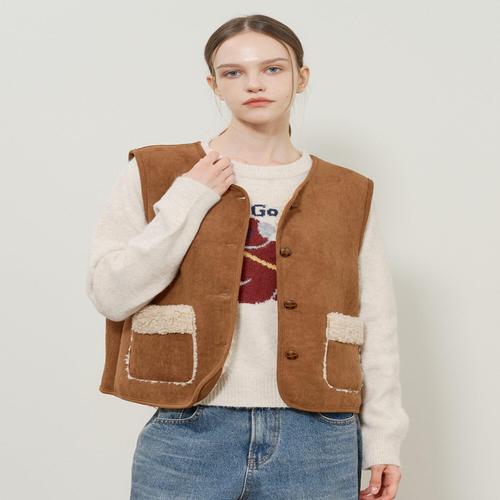 [위시드]투포켓 포인트 뽀글 배색 무스탕 베스트 (WIADVT013)