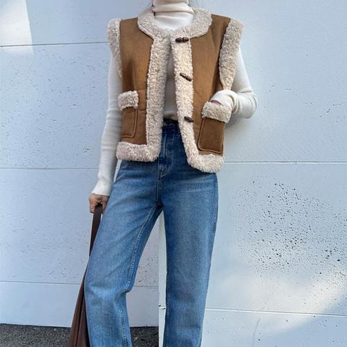 플리스 배색 무스탕 조끼_BI5W1VT4921