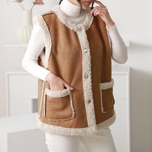 [다잇템]여자 양털무스탕 주머니 홀리데이 조끼