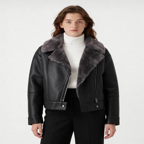 [에이치플러스몰]여성 슬림핏 라이더자켓 여자 가죽자켓 무스탕 블랙