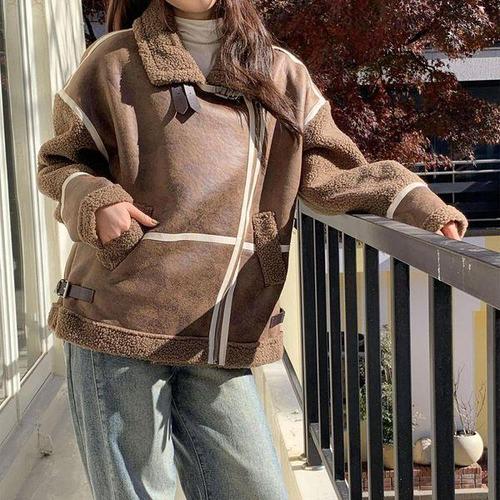 uniquezon 여성 양모 후리스 무스탕 자켓 오버핏 루즈핏 방한 코트 아우터 빅사이즈 80kg까지