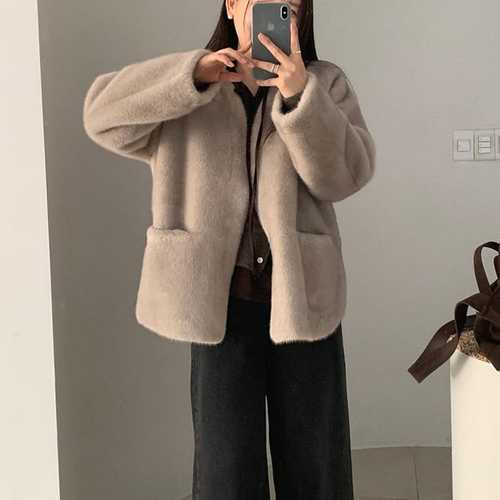 [옷자락]여성 겨울 세련된 따뜻한 양모 무스탕 재킷