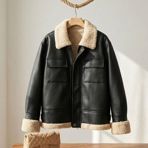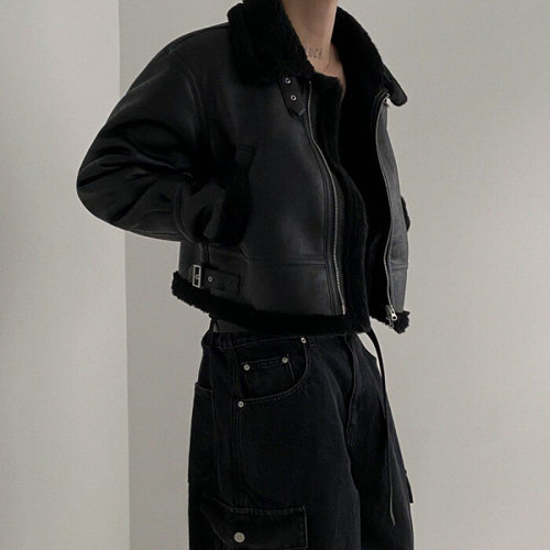 [다잇템]여성 남성 무스탕 퍼안감 박시핏 레더 재킷