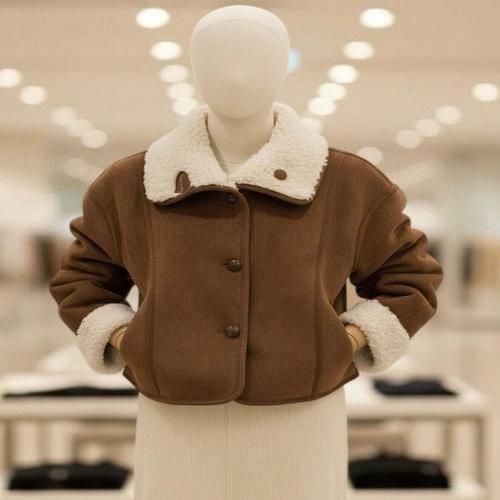 [다잇템][다잇템] 여자 무스탕 레더 퍼안감 박스 남자 통소매 카라 자켓_24025896_588872