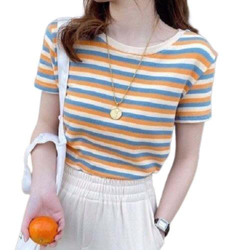 [셀럽하우스]여름 EJFT6338 무지개 반팔티셔츠 데일리 라운드넥 여성