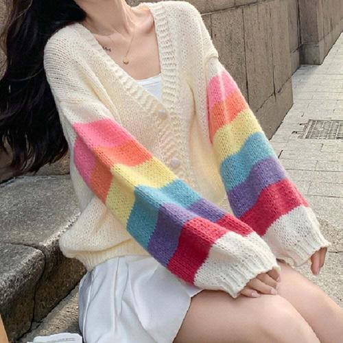 [엄지척]무지개색 포인트 여성 캐주얼 가디건 봄 가을 겉옷_19801589_667501
