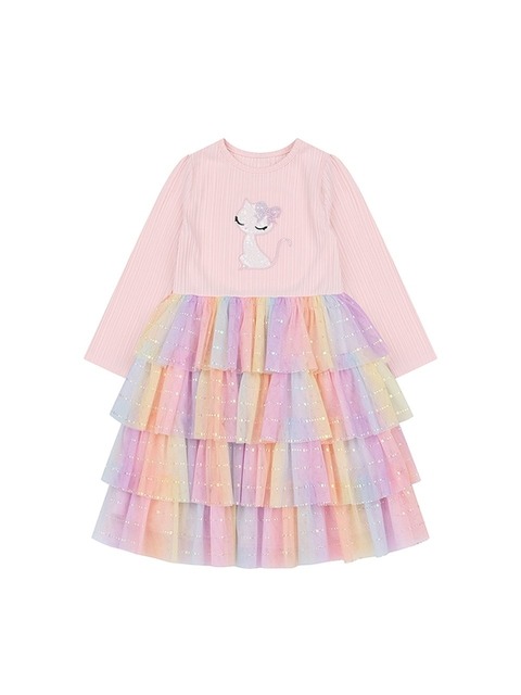프렌치캣8 핑크 무지개 샤 배색 원피스 (Q52DCO150P1)
