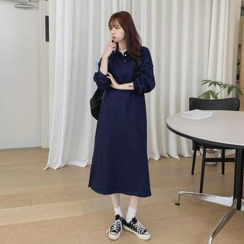 여자 봄 가을 겨울 무지 반목 니트 롱원피스 모임룩 하객룩