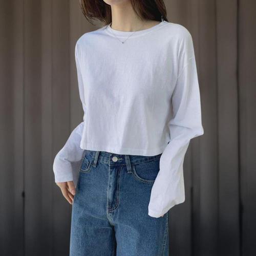 [미라클세븐]여성 무지면 크롭 긴팔 티셔츠