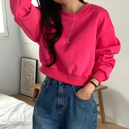 [샵앤][샵앤] 여성 무지 크롭 맨투맨 티셔츠 21DS-WSH-4904-핑크
