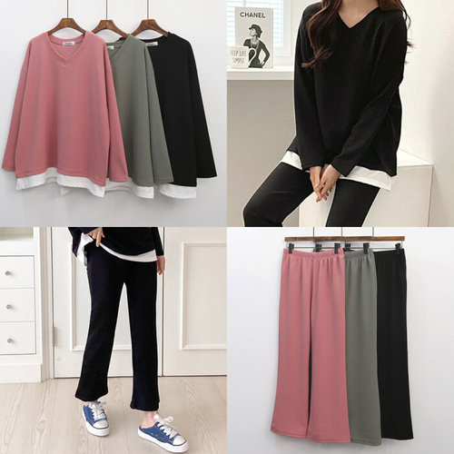 [셀러허브_여성트랜드패션]빅사이즈 506 무지브이티팬츠투피스 DRAI926