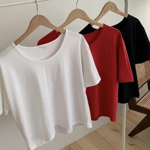 [엄지척]배색 포인트 무지 크롭 반팔티 HH-E43_19615555_667501