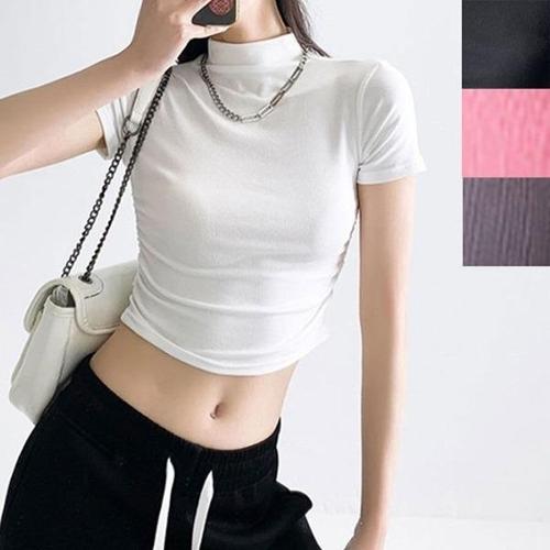 [엄지척]크롭 반팔티 슬림핏 코듀로이 링클 무지 베이직 4컬러_19613812_667501