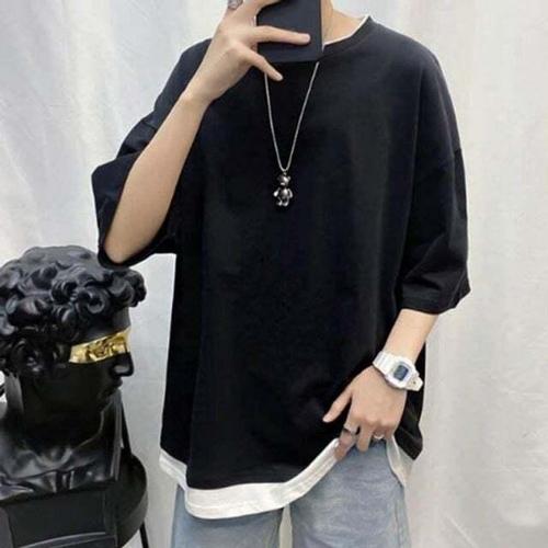 7부 무지 트임 라운드 반팔티 여름 남성 인기 티셔츠