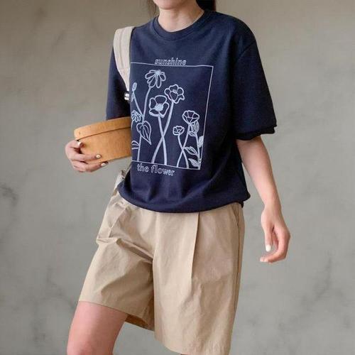 여성 5부 소매 무지 쉬폰셔츠 상의 여름셔츠 반팔