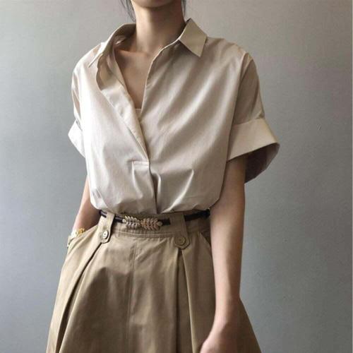 [셀럽하우스]오픈카라 GOUD7211 루즈핏 무지 5부반팔 셔츠블라우스 NF-39
