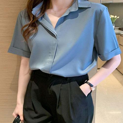 [셀럽하우스]5부 YSCD0339 썸머셔츠 소매 여자 반팔 상의 무지 쉬폰셔츠