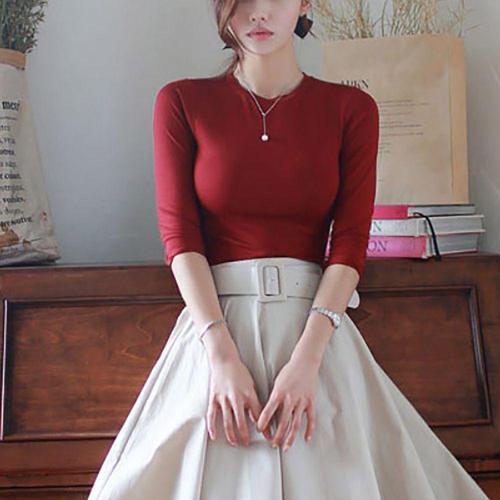 엘케이트 여성 여름니트 베이직 무지 반팔 5부 라운드넥 티셔츠 LNHT001