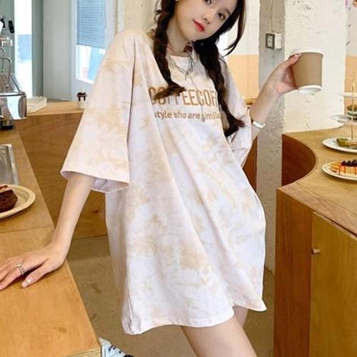 TEMU 여성용 프린트 루즈핏 반팔 티셔츠 - 우아한 라운드넥, 중간 신축성, 세탁기 사용 가능, 봄 여름 가을 캐주얼 탑, 시즌 패션, 비투명 소재