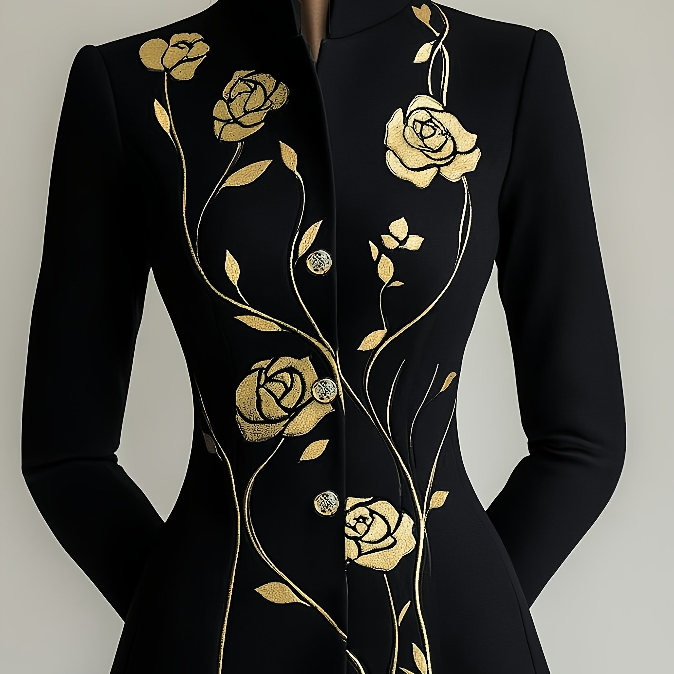 TEMU 고급 골드 포일 장미 디자인 여성 패션 하이엔드 커뮤터 수트 + 싱글 브레스트 프로페셔널 재킷, 데일리 커뮤트, 데이트, 파티에 적합