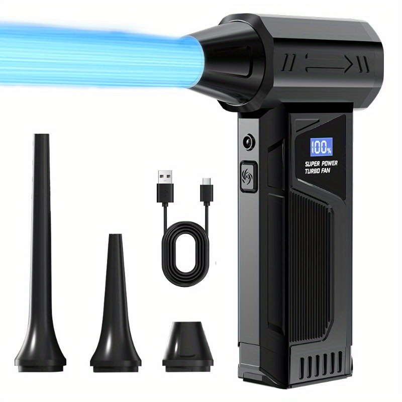 TEMU 전동 에어 터빈 제트 팬, 휴대용 핸드헬드 터빈 팬, 4단 속도 조절 휴대용 고속 청소기, PC 키보드, 자동차, 야외 캠핑, 팽창식 장비, 여름철 가정 냉각, 야외 제설기에 적합
