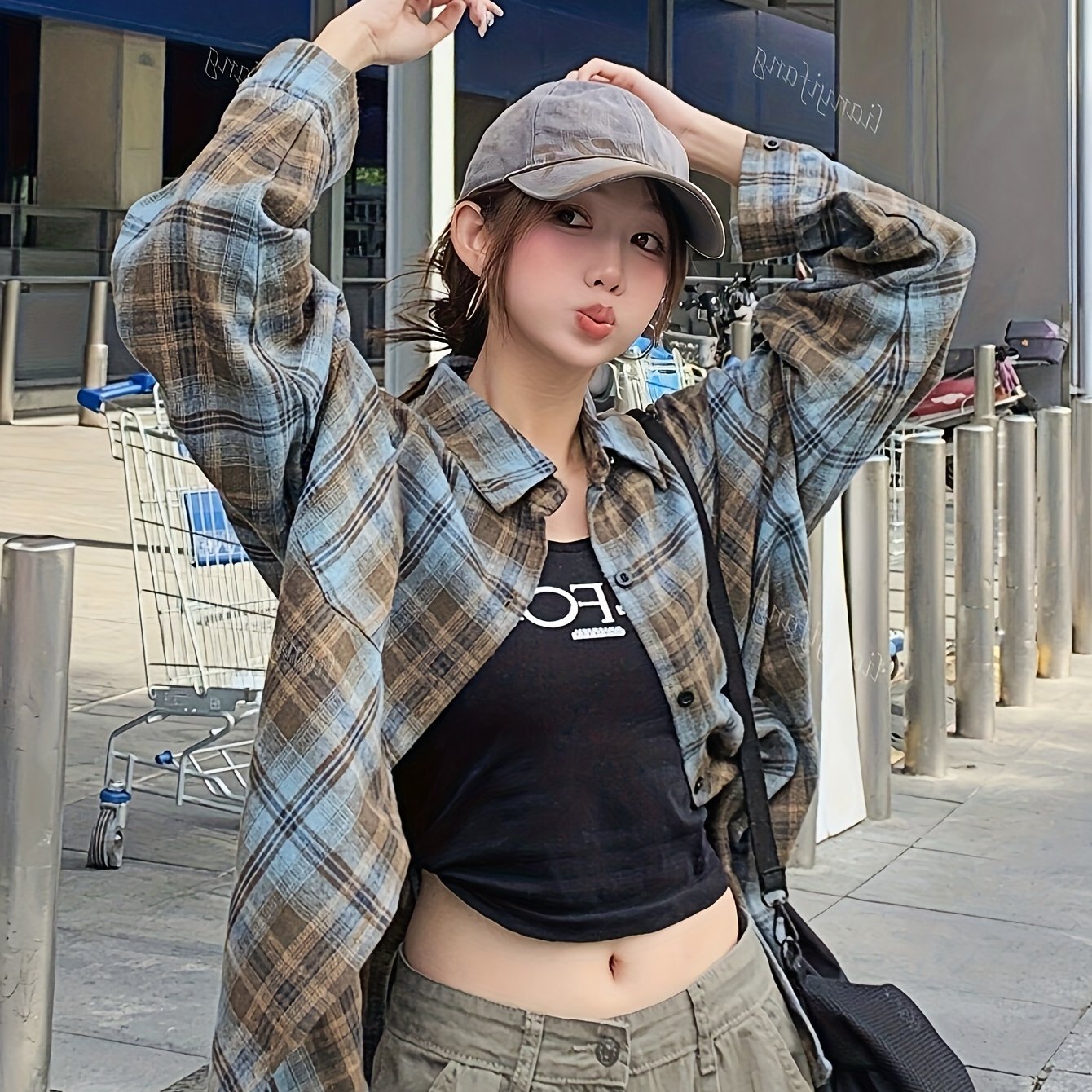 TEMU 봄가을 패션 체크 셔츠