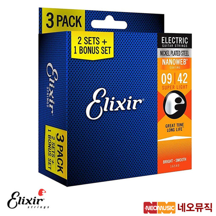 네오뮤직 엘릭서일렉기타스트링 16540 Super Light 3pack