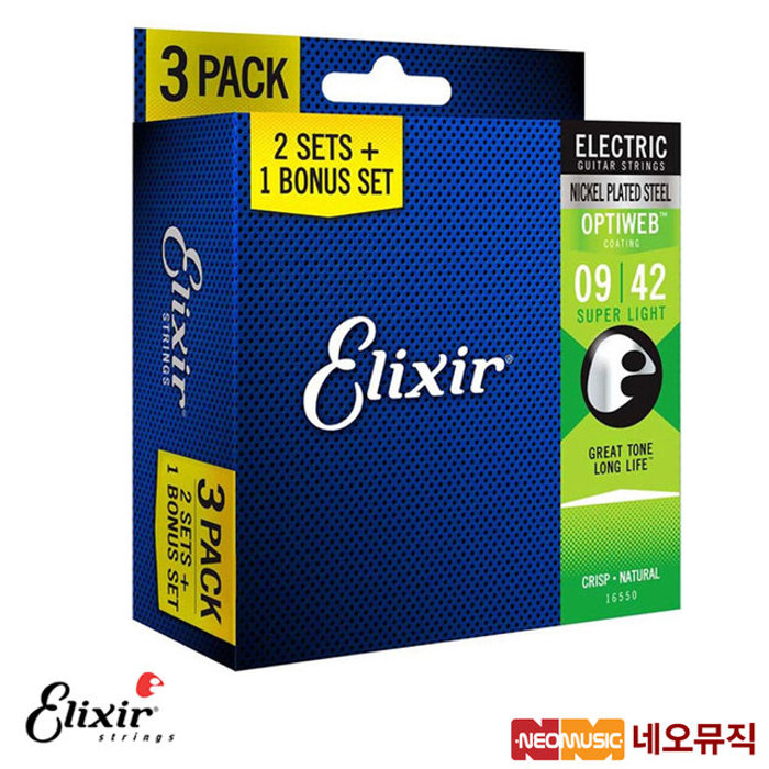 네오뮤직 엘릭서일렉기타스트링 16550 Super Light 3pack