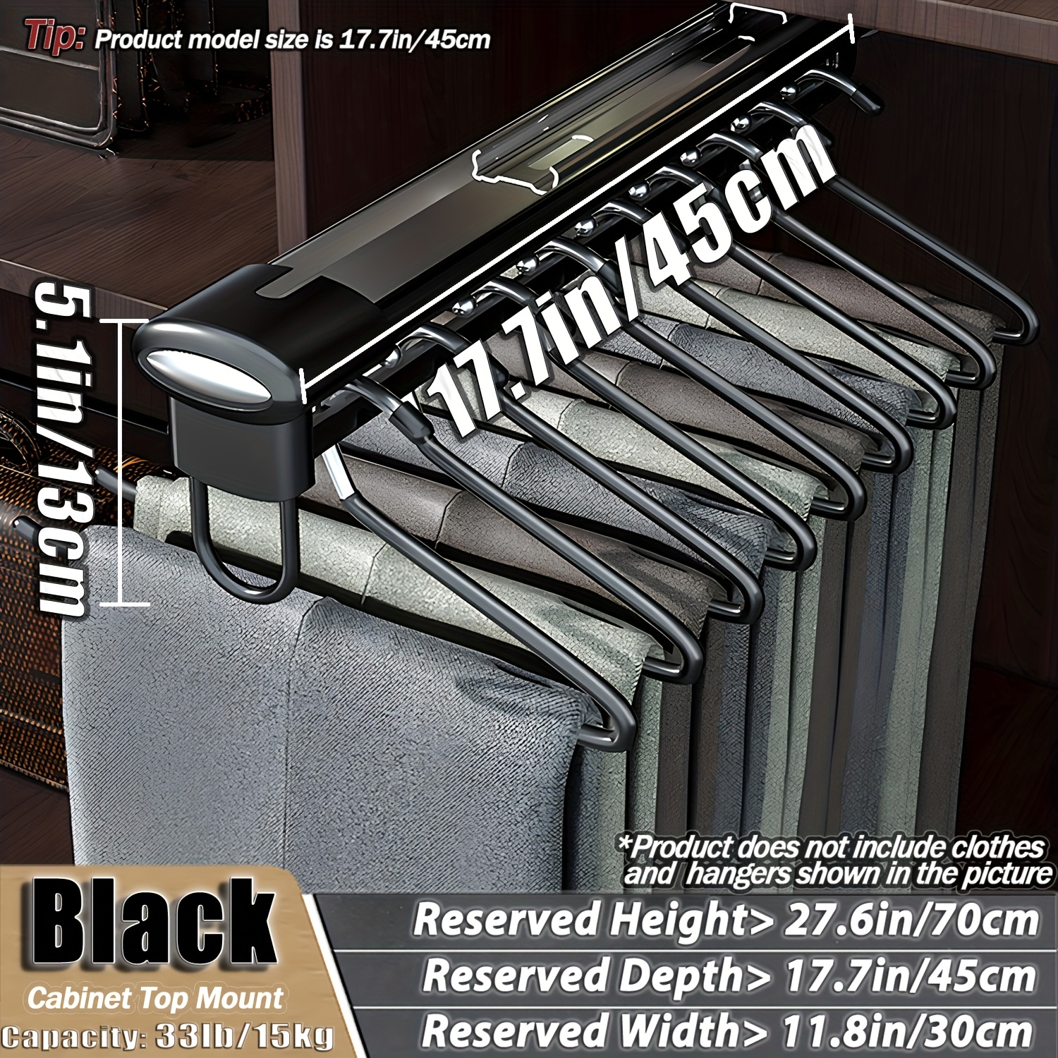TEMU 강화된 받침대가 있는 조절식 텔레스코픽 풀아웃 바지 랙 | 공간 절약형 경량 옷장 정리대 (바지, 셔츠용), 좁은 캐비닛에 적합, 알루미늄 재질, 벽걸이형 옷장 시스템
