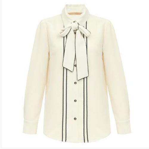 [미니멈]배색 라인 리본 블라우스 (MYDAWB0820 IV)_IC