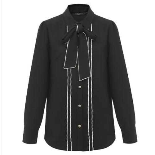 [미니멈]배색 라인 리본 블라우스 (MYDAWB0820 BK)_IC