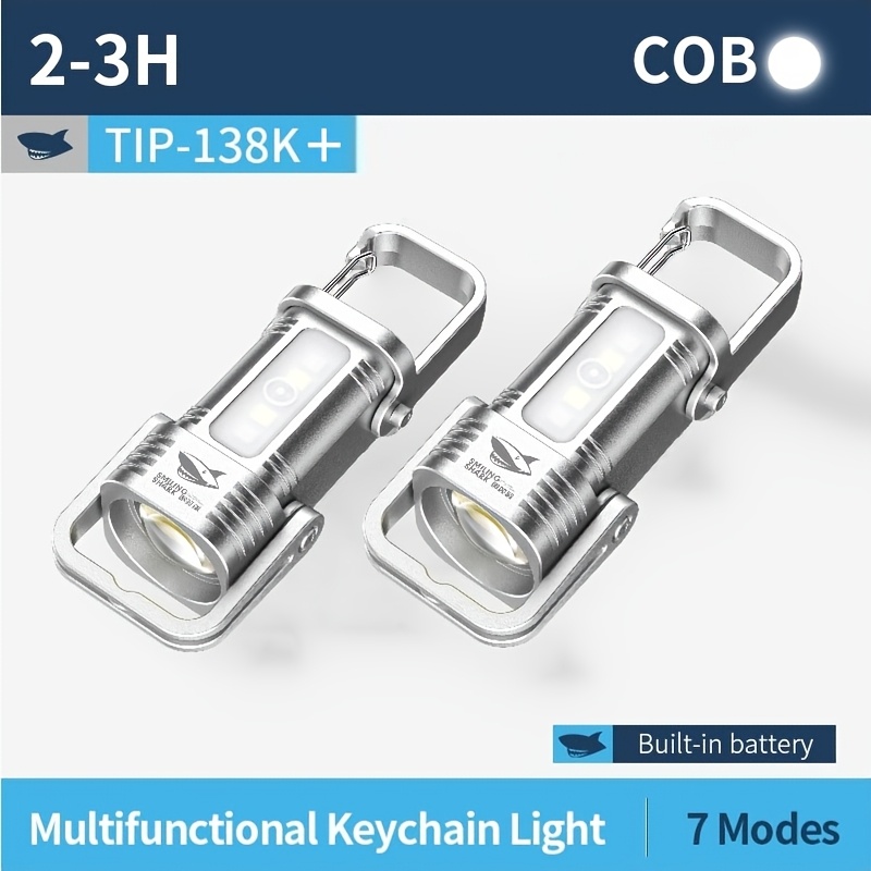 TEMU 2개 세트 스마일링 샤크 휴대용 미니 손전등, 후크 키체인 LED 토치, 초고휘도 LED, 컴팩트 및 충전식 배터리 포함, COB 작업등, 내구성 강한 스트로브, 경량 , 하이킹 장비 워킹 캠핑 비상용 TIP138 실버