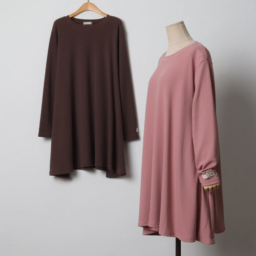 [브이와이][VY] 여자 골지라운드 일상룩 롱 빅사이즈 미니멀리즘 맨투맨 원피스_15265697_588847
