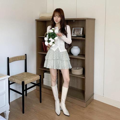 [옷자락] 여성 미니 봄 레이스 층주름 스커트