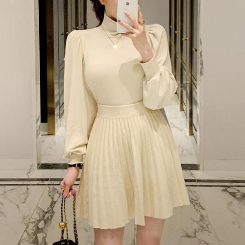 핏몬 여성 니트 밴딩 플리츠 A라인 미니 스커트