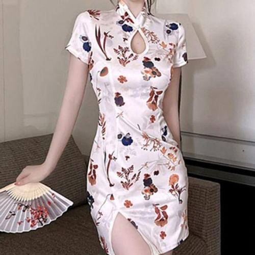 [셀럽하우스]화이트 ILCQ0425 여성 캐주얼 미니 치파오 프릴 원피스 코스프