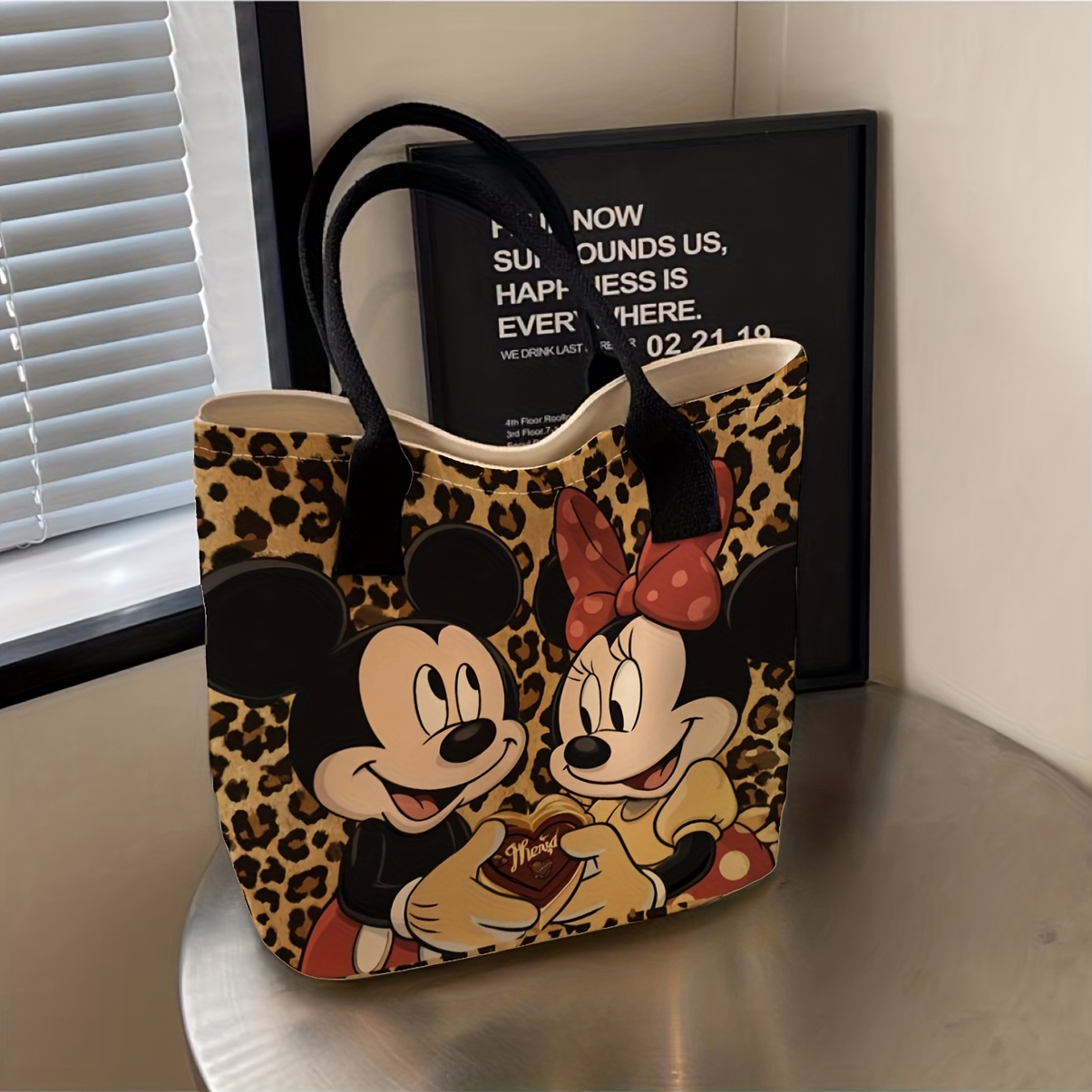 TEMU 스타일리시 프린트 미키 & 미니 마우스 대용량 지퍼 토트백 - 만화 프린트 캐주얼 커뮤터 숄더백, 휴대용 크로스바디 백, 고정 스트랩, 연갈색/검정, 손세탁 또는 드라이클리닝 가능, 캐주얼 숄더백 | 재미있는 디자인 | 내구성 있는 지퍼 클로저, 여성용 지갑, 토트백|지갑|에코백