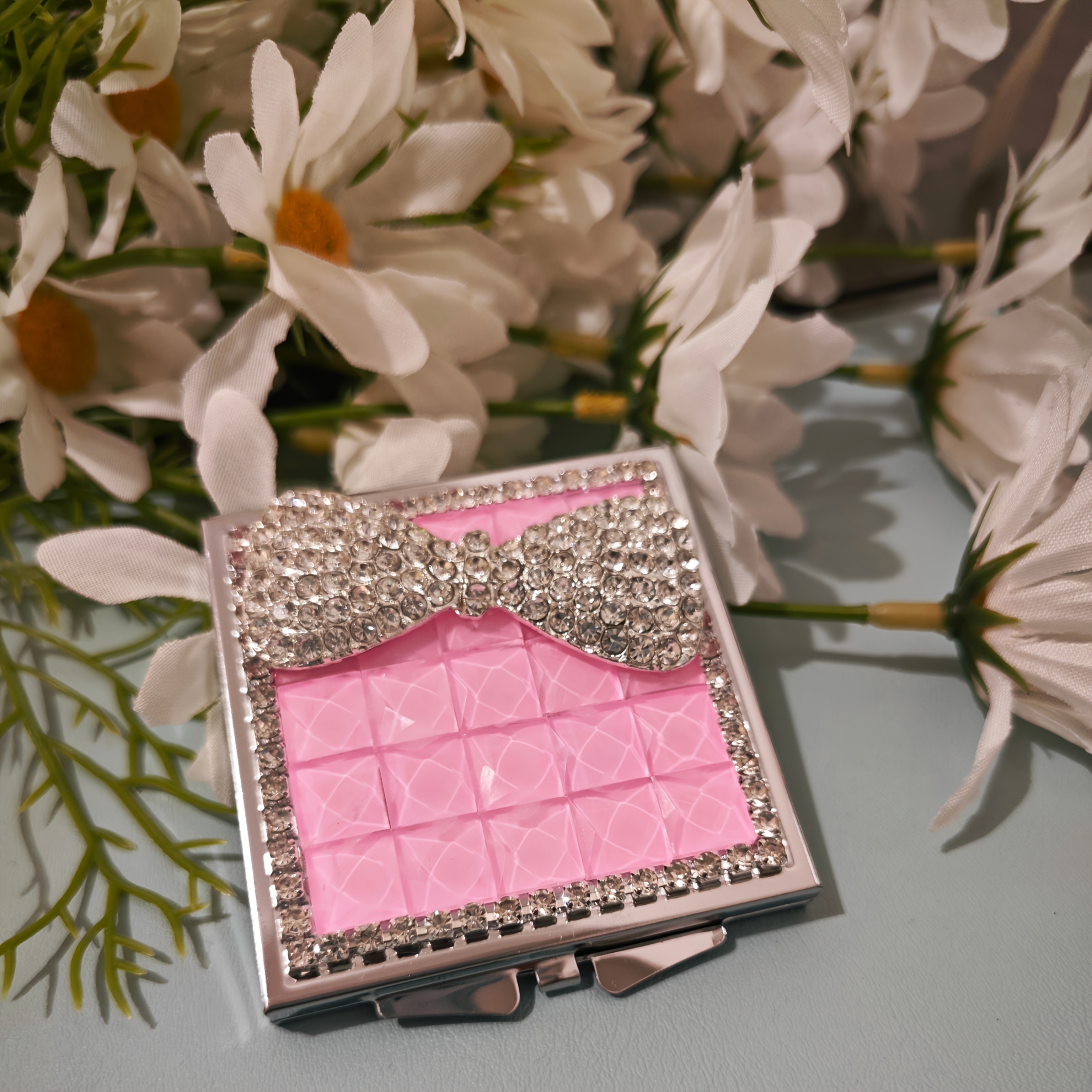 TEMU 스타일리시하고 우아한 휴대용 메이크업 거울, 나비 장식 세련된 미러, DIY 리본 스퀘어 양면 접이식 핸드백 거울, 터치업 미러, 소품 선물, 미러