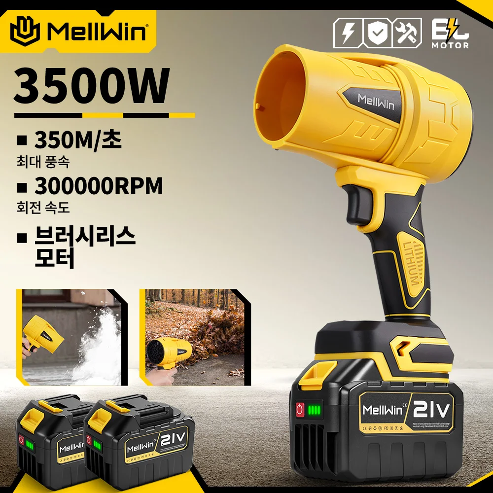 MELLWIN 300000RPM 브러시리스 전기 터보 팬 블로워 제트 350M/S 핸드헬드 리프 블로워 먼지 제거기 마키타 18V 배터리 핀용