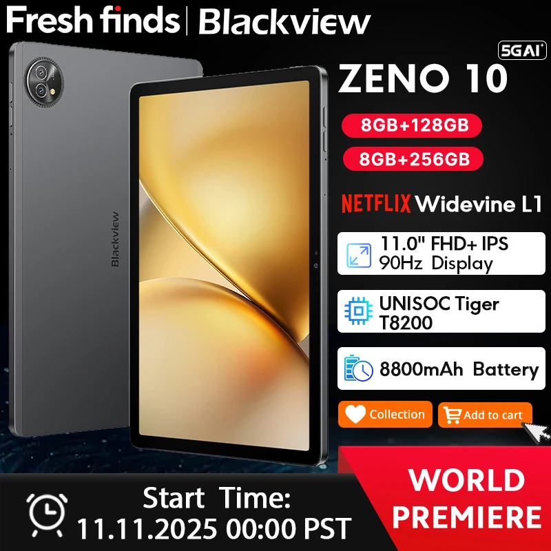 【세계 최초 공개】블랙뷰 제노 10 5G AI 태블릿 11인치 FHD+ 90Hz 디스플레이 와이드바인 L1 8800mAh 쿼드 스피커 안드로이드 15 패드 PC