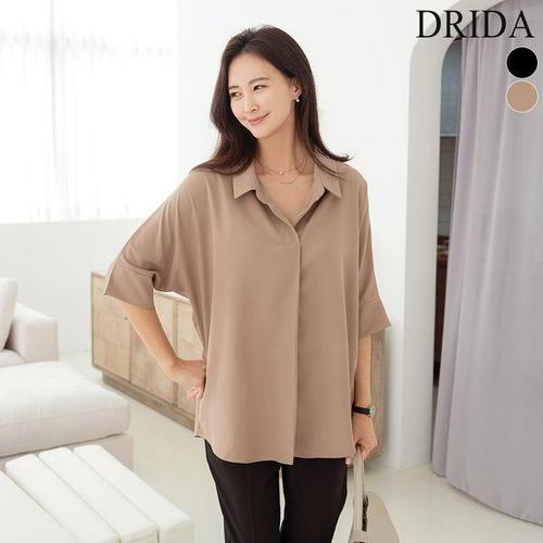 [행복여] 바엔 절개 트임 루즈핏 오픈 카라 블라우스