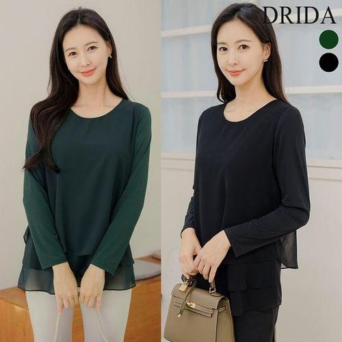 [드리다]봄 가을 캉캉 이중 쉬폰 빅사이즈 티 블라우스 40-50대 미시 중년여성옷 엄마옷 하객 출근 모임