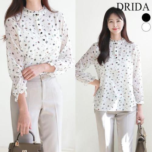 드리다 여성 봄 프릴 반오픈 패턴 나염 빅사이즈 쉬폰 블라우스 40-50대 미시 중년여성 엄마옷 하객 출근