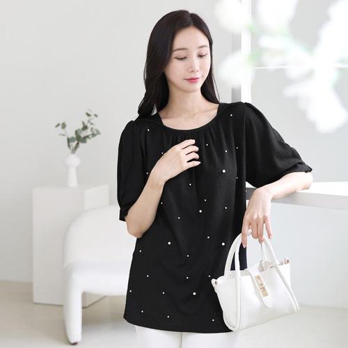 여성 여름 진주 주름지 스판 빅사이즈 반팔 티 블라우스 40-50대 미시 하객 상견례 모임 엄마옷