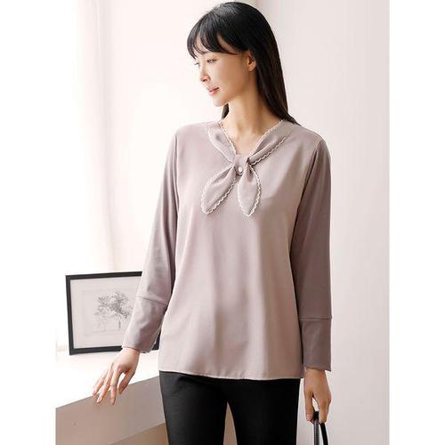 [드리다]여성 리본 타이 빅사이즈 스판 티 블라우스 40-50대 미시 중년여성 엄마옷 하객 모임 오피스룩