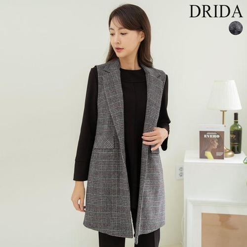 [드리다]엄마옷 겨울 여성 카라 체크 울 정장 조끼 빅사이즈 롱 베스트 40-50대 미시 중년 하객 상견례 ..